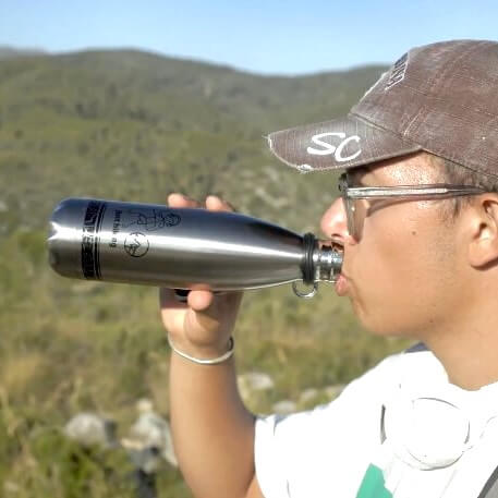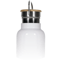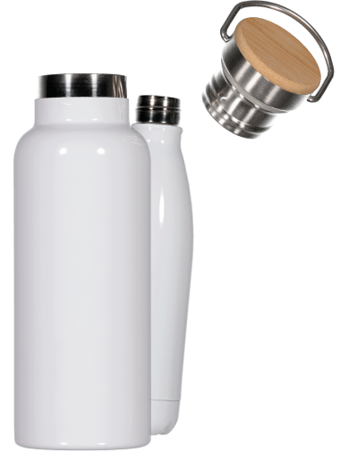 Nuestras botellas son de acero inoxidable y están libres de BPA y toxinas. La tapa está hecha de bambú y acero.